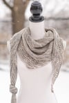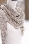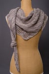 Skill Level: Intermediate / Adventurous BeginnerNotes: Asymmetrical scarf, knit sideways on a bias. Lace comes written and charted.