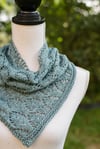 Intermediate knitting pattern for an asymmetrical cowl, that is knit sideways and shaped using increases. Pattern requires less than one 100 gram skein of dk yarn to complete. Finished cowl must be seamed. Charted and Written Instructions are included in pattern.