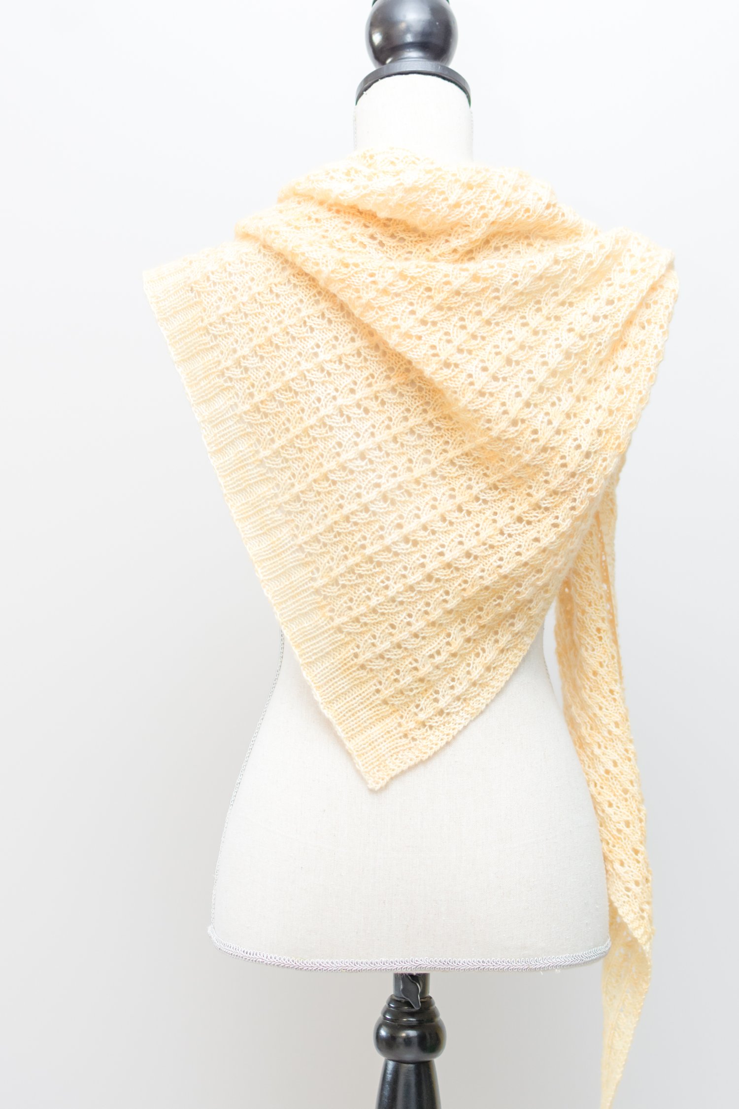 Gauge: 25 sts = 4" / 10 cm in Vertical Lace Stitch after wet blocking (gauge is not overly important; however, it will alter yardage and finished measurements)