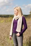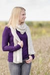 A mix of garter stitch & bits of eyelet lace makes knitting interesting while you whip up a cozy and warm scarf. Great for beginner knitters looking to try a touch of lace. This easy to adjust pattern uses DK yarn, and is written to use up all of your yarn.